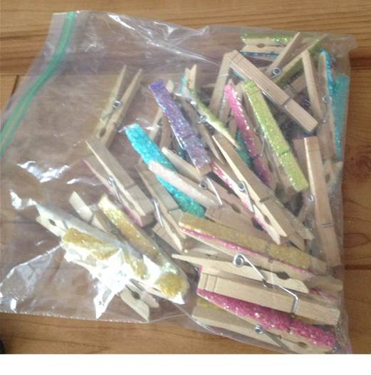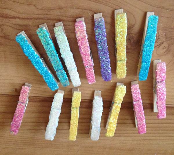 These glitter clothespins were super easy too! This glitter pack was only $4 at Wal Mart, and all the colors were perfect for my classroom!