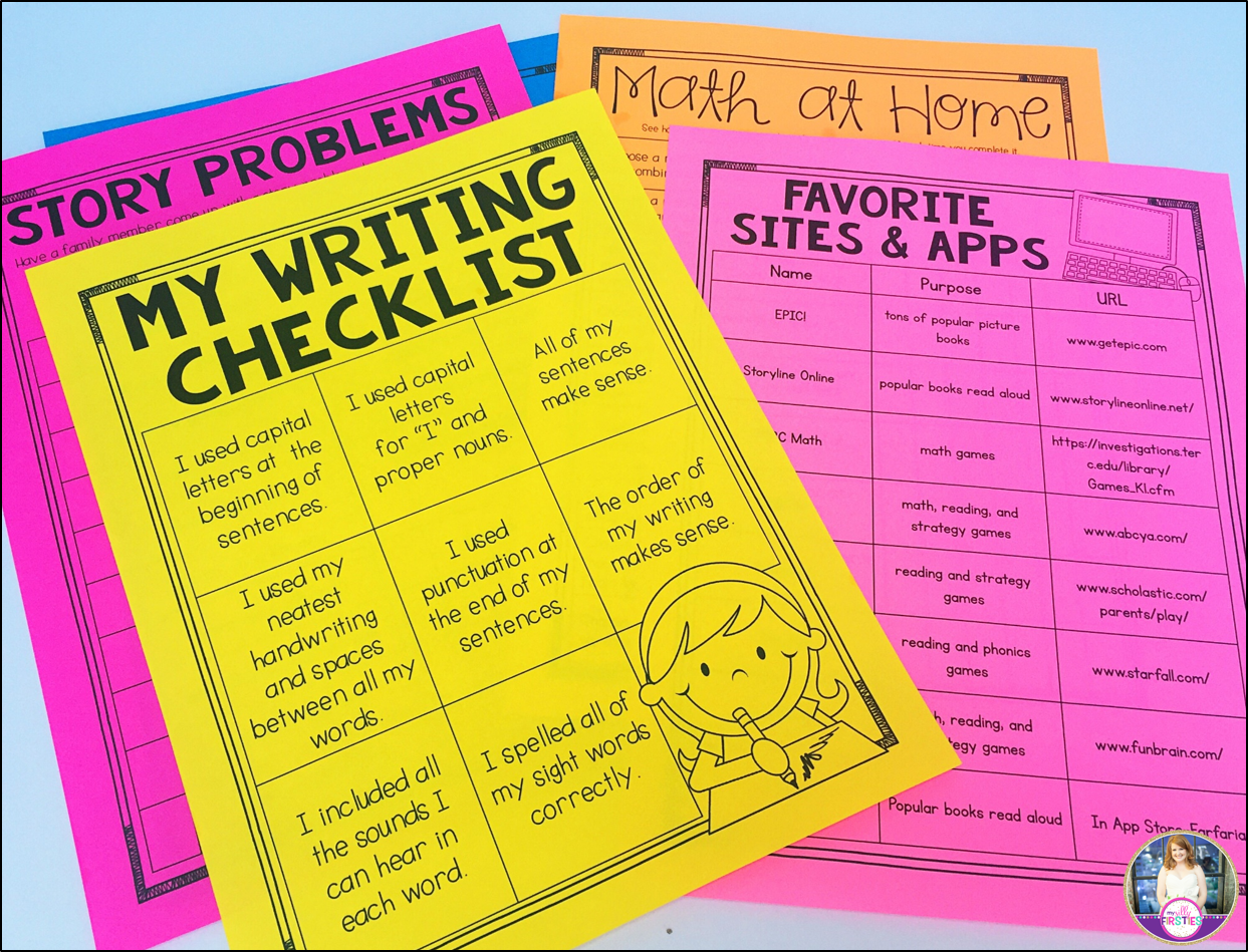 Here are some otherp agse I sent out ot parents. The writing checklist allows their child to write about whatever they want, in whatever tools they have! They could type it, write it in a spiral (which you could totally send home as an EOY gift) or whatever works for their family.
